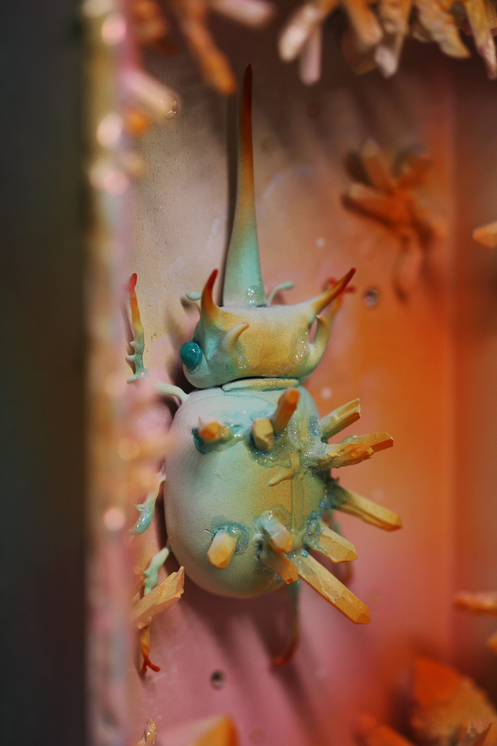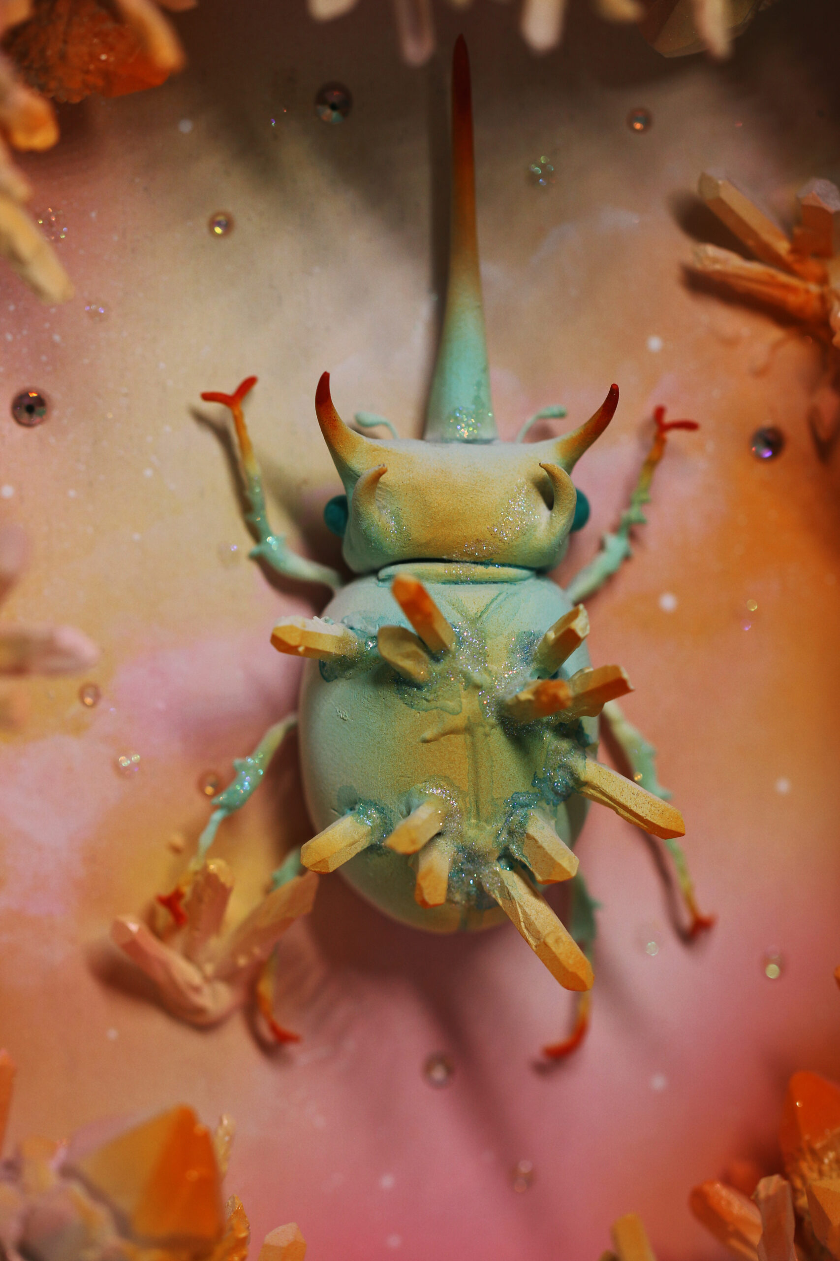 I’ve always imagined creating a crystallized beetle resting peacefully inside a shadow box, and that day finally came when I was able to bring my ideas and motivation together.