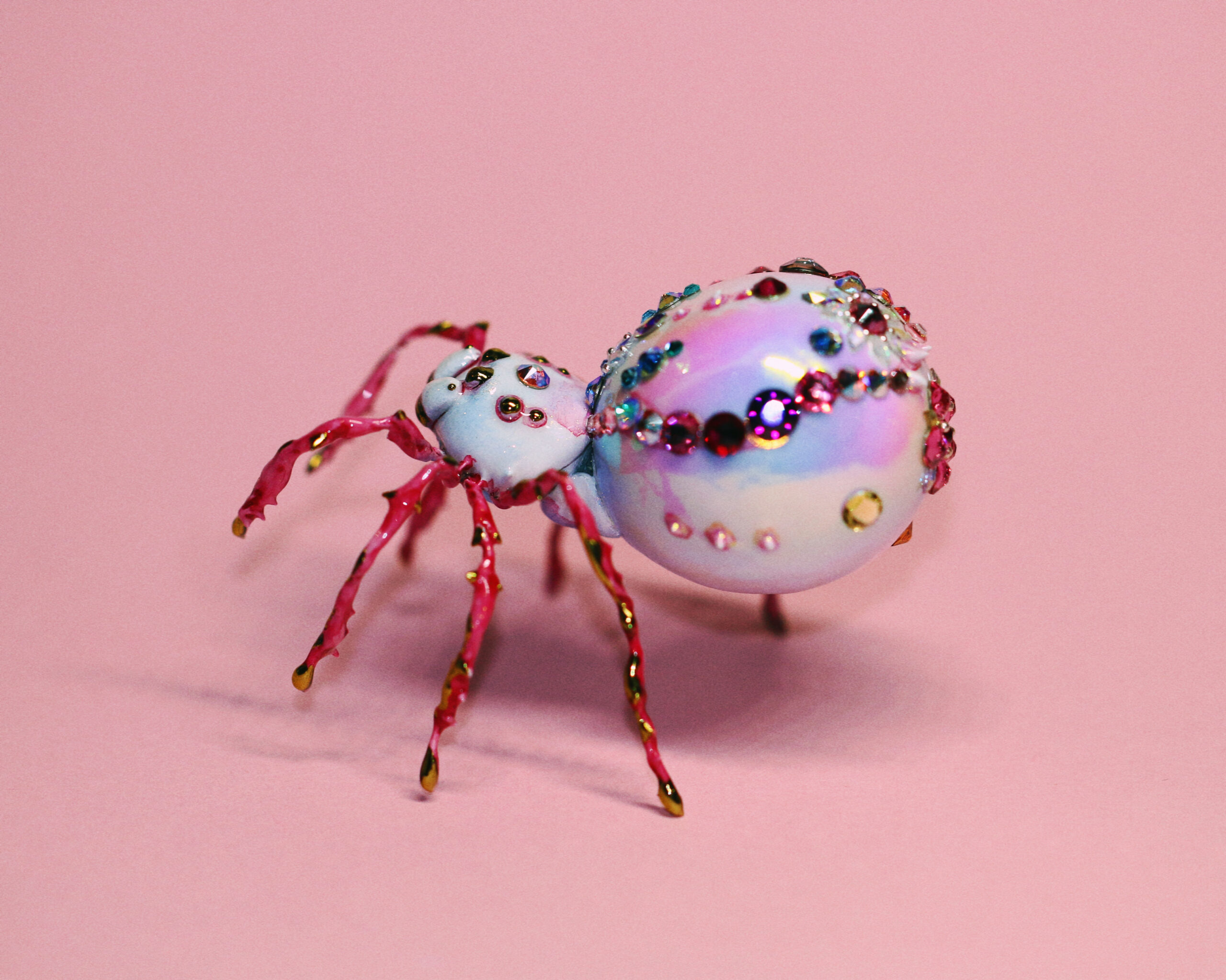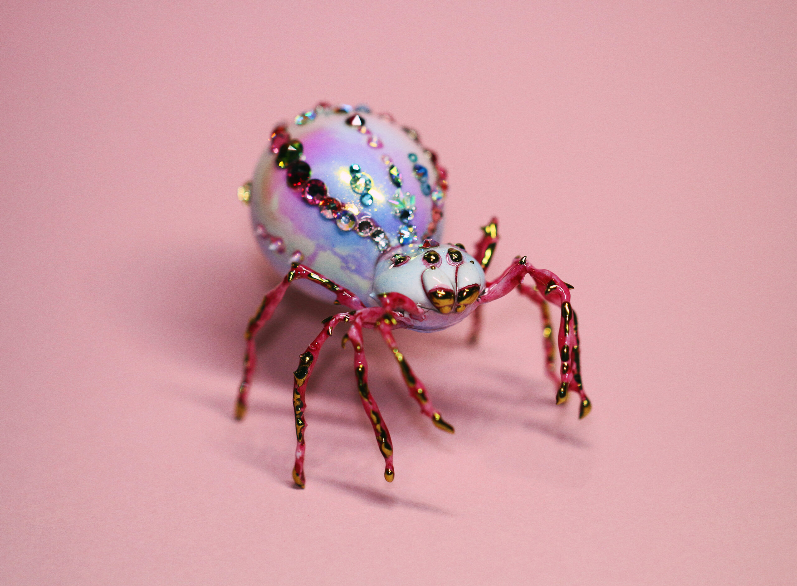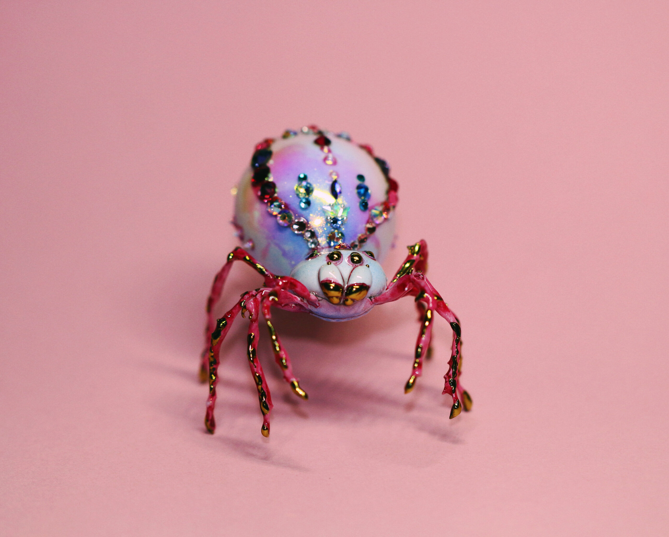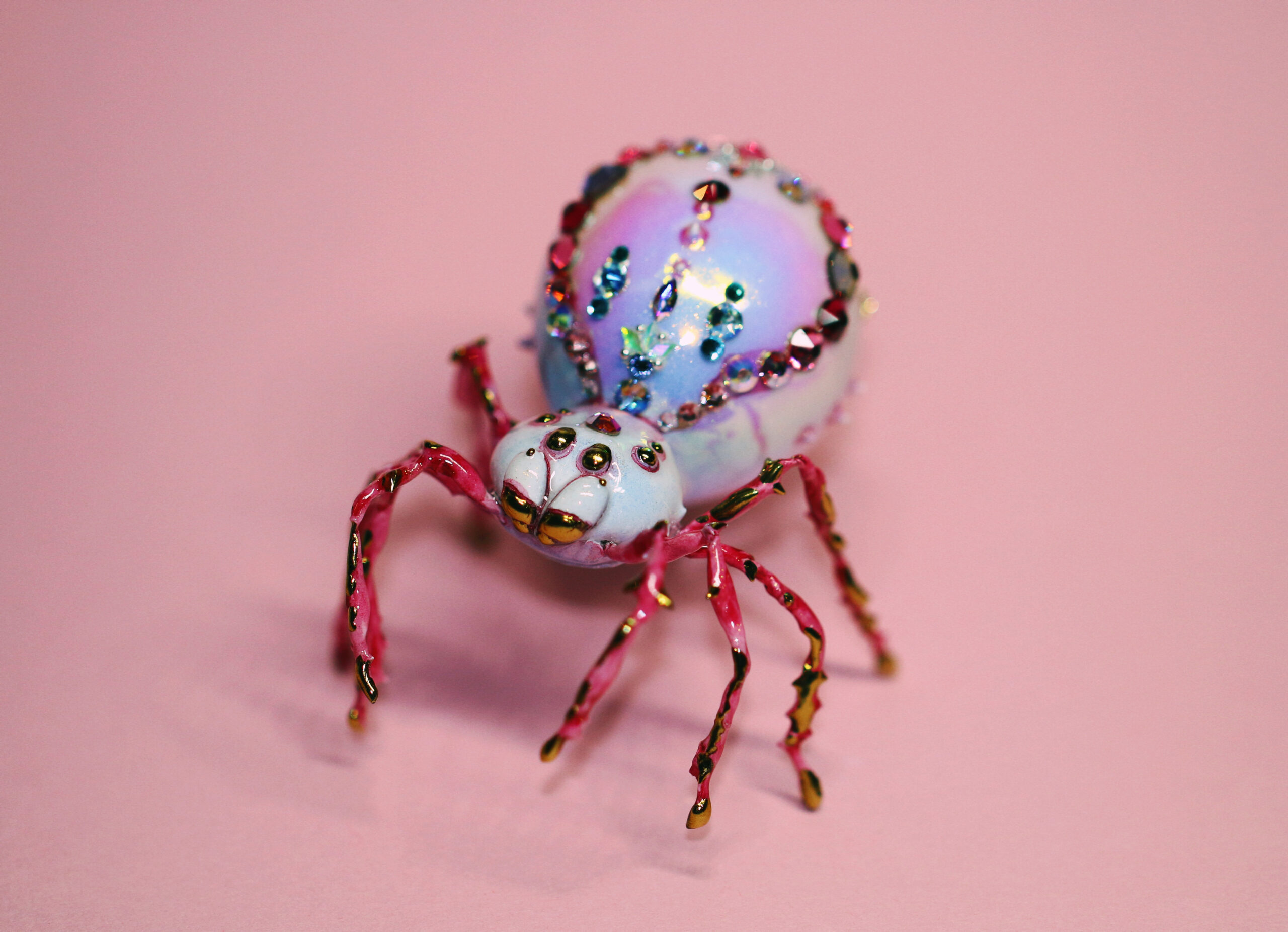 Once, in a quiet corner of a soft pink world, I spent many patient hours placing jewels one by one, letting time move slowly as she came to life. When the jeweled spider finally emerged, she discovered that not everyone loved spiders — but she only tilted her head and kept shining. Every gem on her back is a small spell, a reminder that beauty often appears in unexpected forms.
