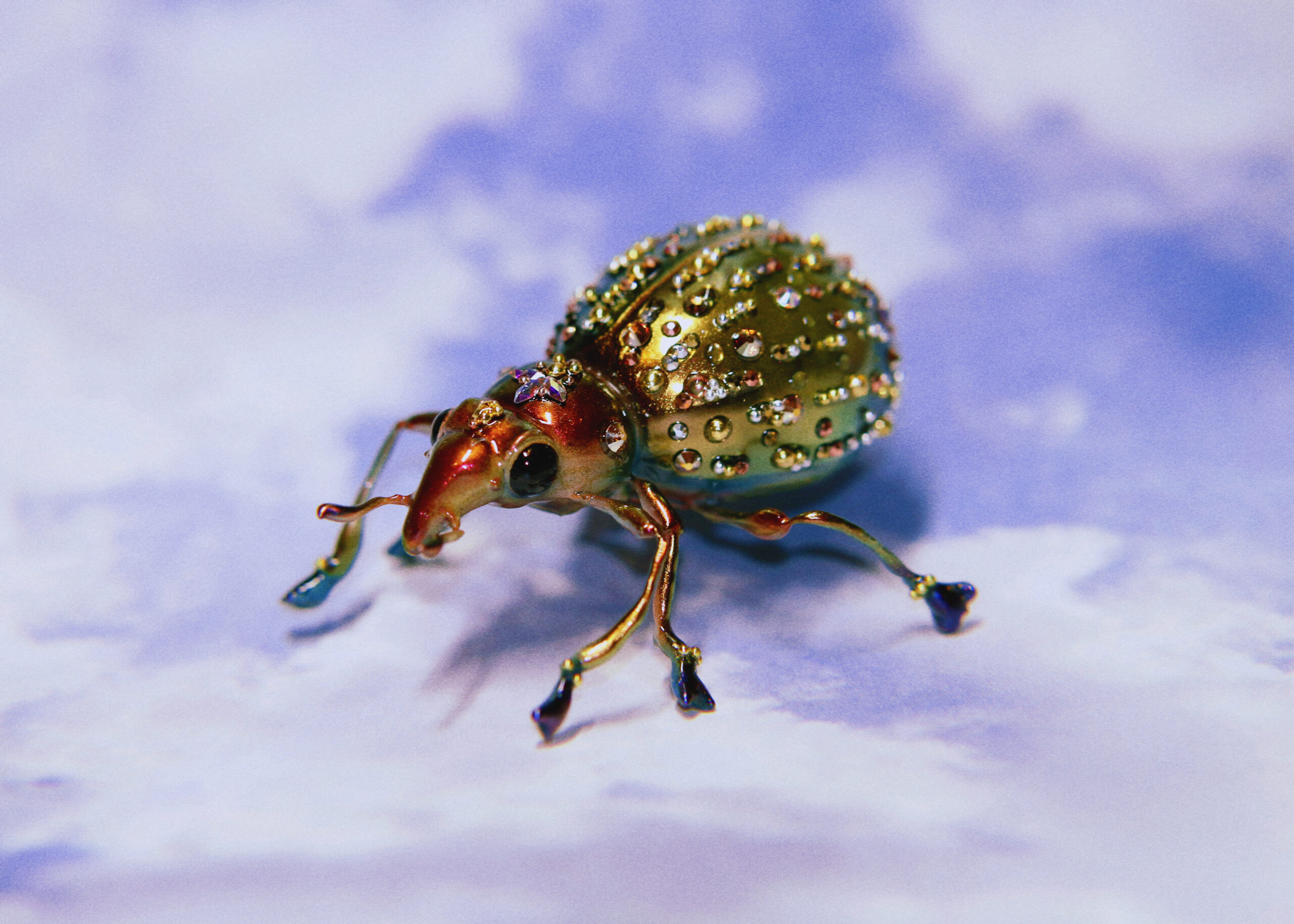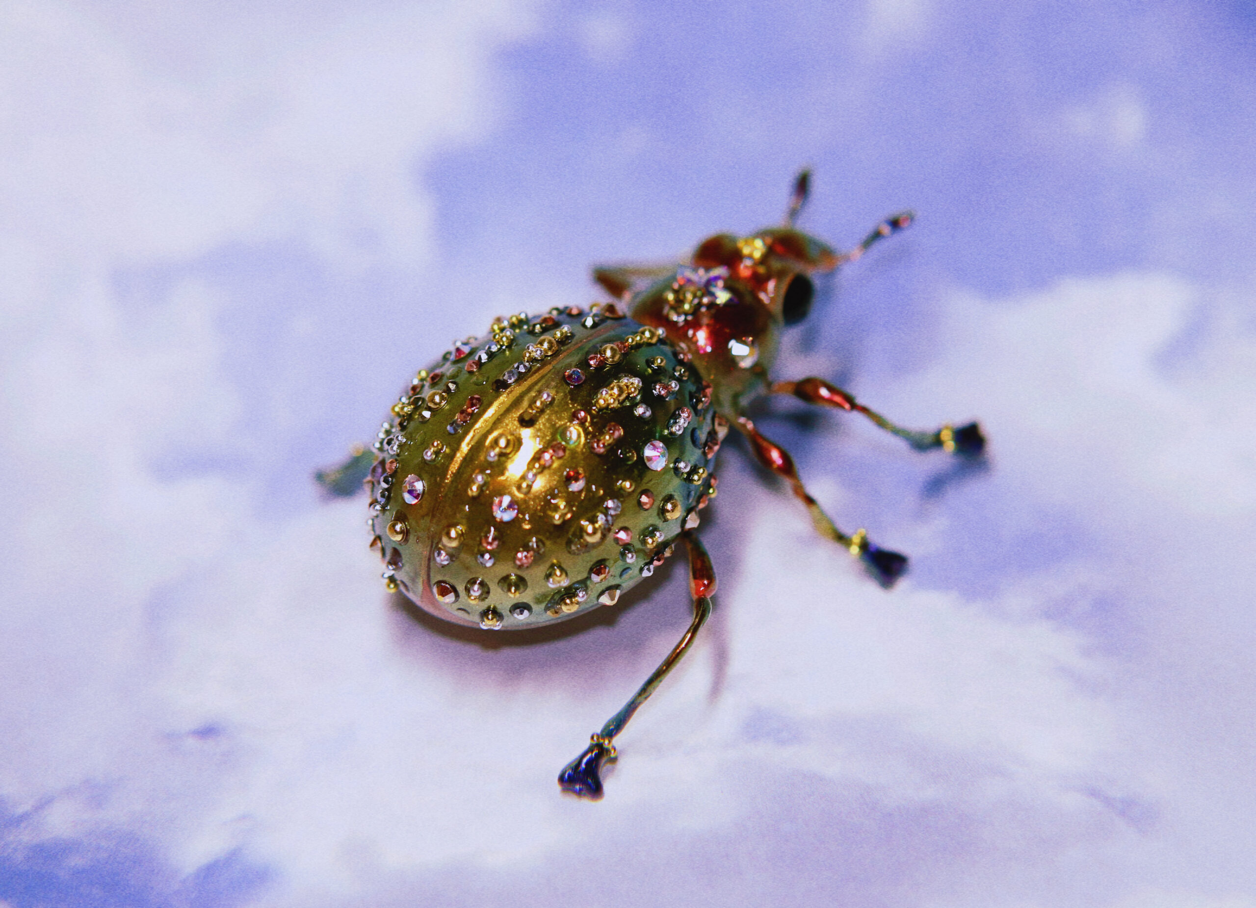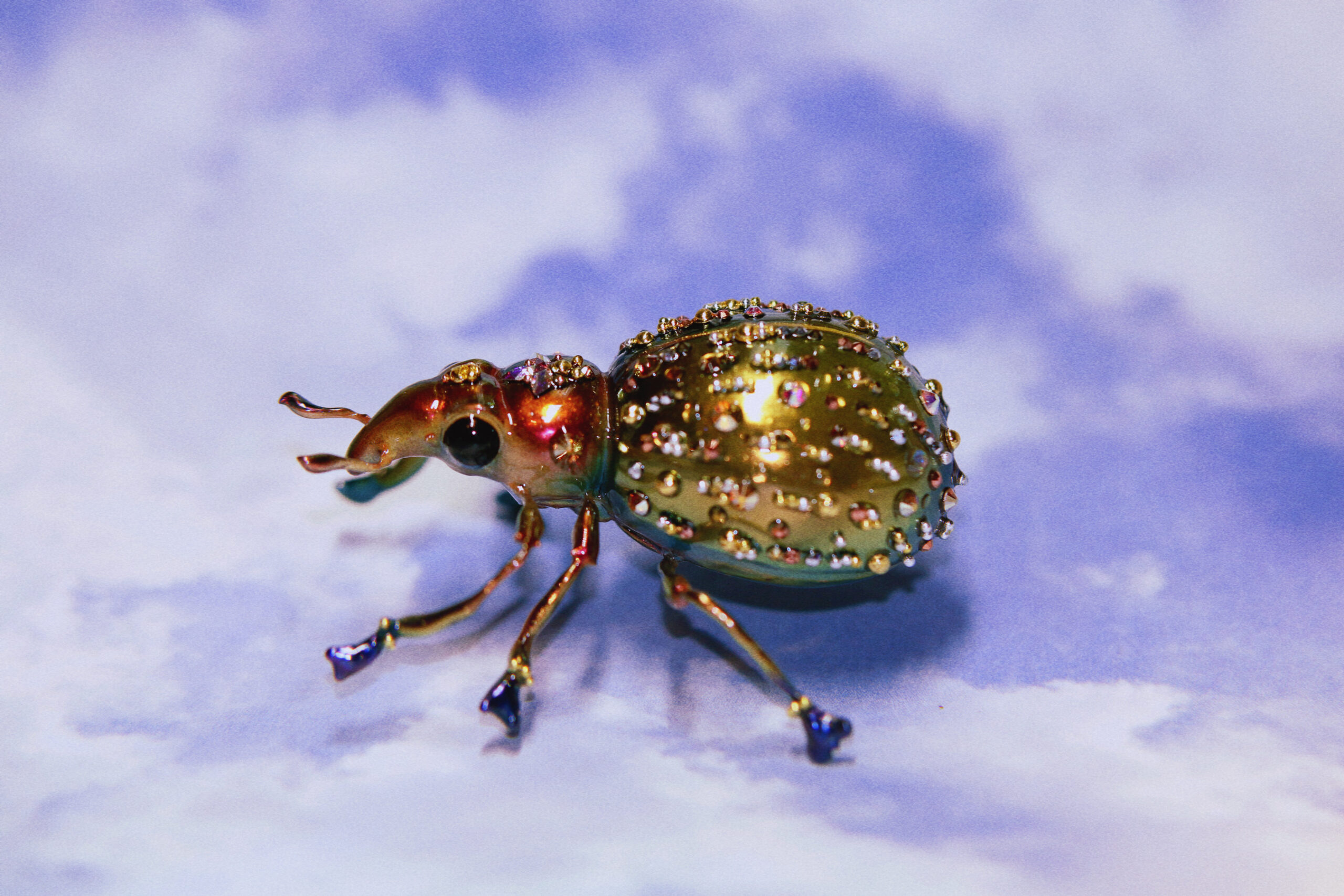 This piece took countless hours of patience, layering, and steady hands to bring to life. Every tiny gem, every gradient of color, and every painted detail was done with extreme care — often taking several tries to get it just right. What may look like effortless beauty now was built through long nights, trial and error, and the quiet rhythm of focus. I wanted this jeweled weevil to feel alive — like a small creature born from dreams and light — and finding that perfect balance between delicate and striking was no easy task. But that’s the magic of creating art: the process tests your limits, and the result reminds you why you never gave up.