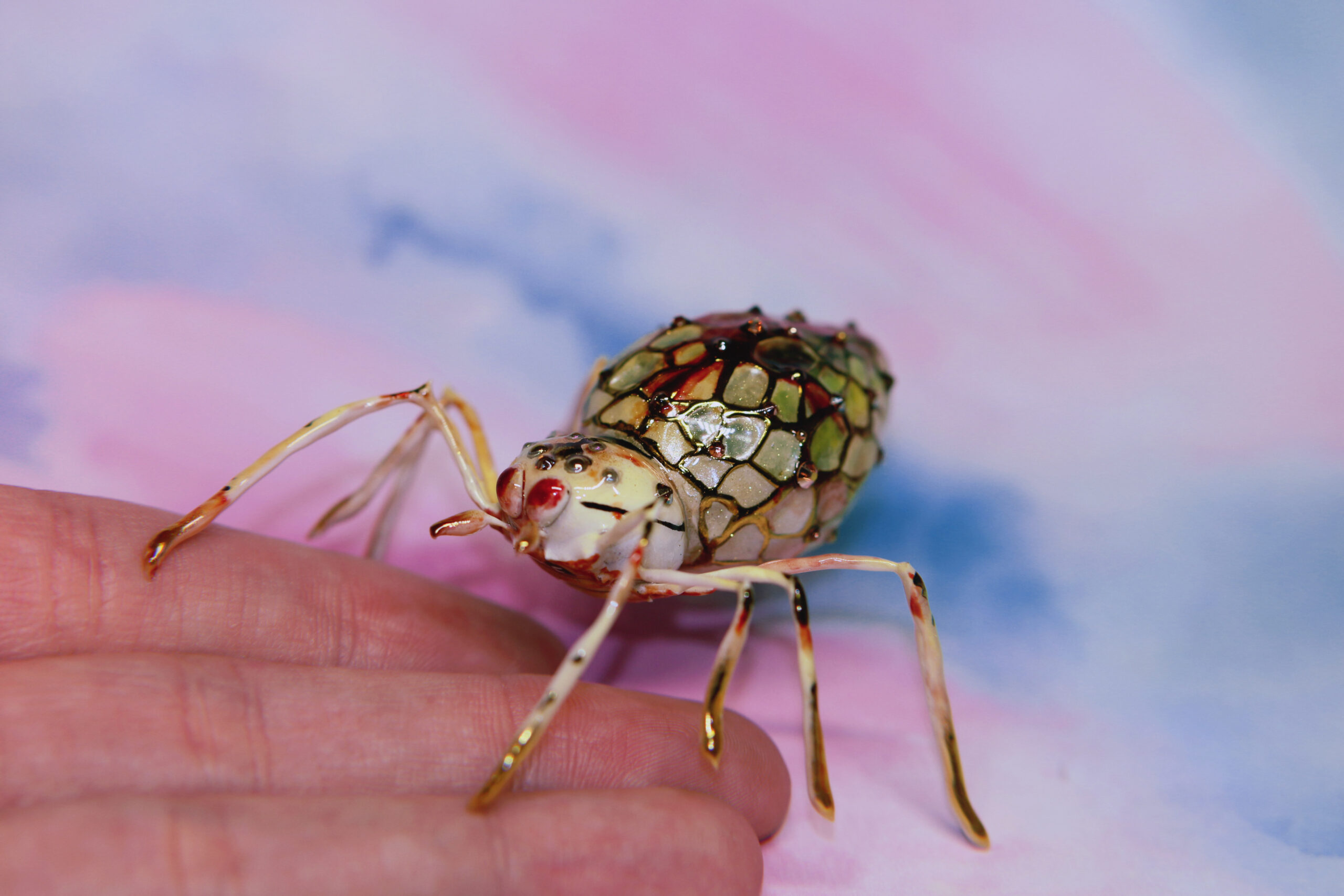 This piece took countless hours of patience, layering, and steady hands to bring to life. Every tiny gem, every gradient of color, and every painted detail was done with extreme care — often taking several tries to get it just right. What may look like effortless beauty now was built through long nights, trial and error, and the quiet rhythm of focus. I wanted this jeweled spider to feel alive — like a small creature born from dreams and light — and finding that perfect balance between delicate and striking was no easy task. But that’s the magic of creating art: the process tests your limits, and the result reminds you why you never gave up.